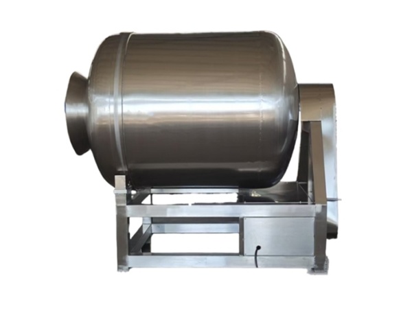 真空滚揉机是在真空状态下,利用物理冲击的原理,让肉在滚筒内上下翻动,相互撞击、摔打,打到按摩、腌渍的作用,使肉均匀的吸收腌渍,提高肉的结着力及产品的弹性;本机具有肺呼吸功能,让产品在滚筒内做膨胀、缩小的往复运动,改善了肉组织的结构,提高了切面效果,增加了出品率。可以增强保水性,改善产品的内部结构。